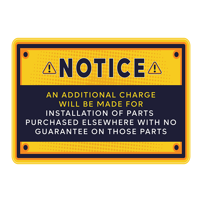 Be the first to review “Notice An Additional Charge for Parts Purchased Elsewhere | Sign 14in x 20in”