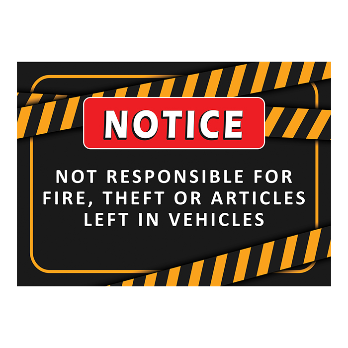 Notice Not Responsible for fire theft… | Sign 10in x 14in