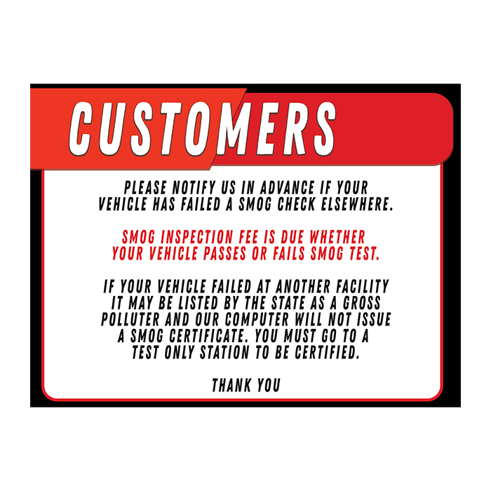 Notify if vehicle has failed…Smog Fee is due| 18in x 24in
