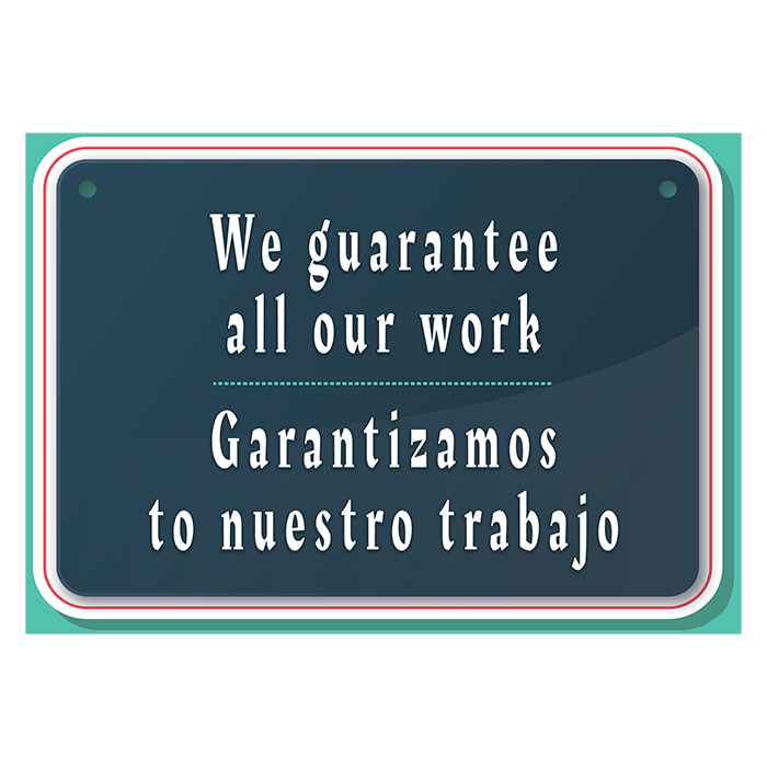 We Gurantee All Our Work (Bilingual) | Sign 14in x 20in